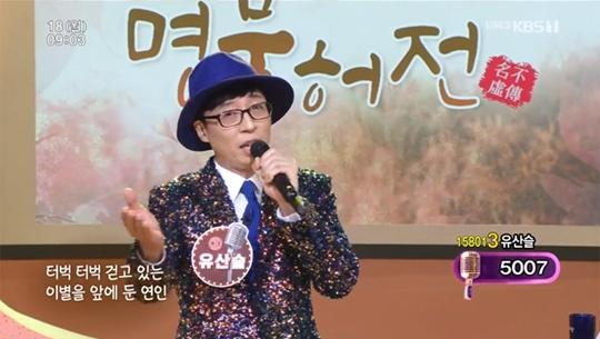 차세대 트로트 신인을 뽑는 코너로 진행된 <아침마당>에 가수 박상철이 “대한민국을 트로트 열풍으로 이끌 남자, 트로트의 용이 되고 싶은 남자, 유산슬”을 소개하자 스튜디오에 메뚜기춤으로 나온 유재석이 깜짝 웃음을 안겼다. “제가 나와서 놀라셨죠?”라는 말 그대로 시청자들도 깜짝 놀랄 수밖에 없었다. 그를 소개하는 유산슬이라는 자막 옆에는 이제 버젓이 ‘가수’라는 지칭이 달라붙었다.