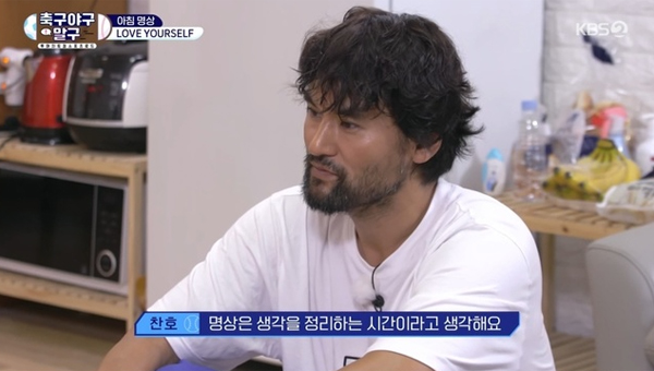 그런데 이들은 스포츠뿐만 아니라 예능 프로그램에 있어서도 초보가 맞나 싶을 정도로 다채로운 재미와 의미를 선사한다. 물론 박찬호는 예전부터 예능 나들이를 해온 바 있고, 이영표도 최근 MBC <안싸우면 다행이야> 같은 예능 프로그램을 통해 선배 힘들게 하는 후배 캐릭터로 웃음을 준 바 있다. 하지만 <축구 야구 말구>에서 이들의 케미는 스포츠선수로서의 진정성이 담겨 있다는 점에서 더 흥미진진함을 안긴다. 선배로서 깍듯하지만 경기에 있어서는 가차 없는 이영표와 시작부터 '투 머치 토커'로 귀에 피가 날 정도로(?) 말을 쏟아내지만, 밤에는 꼭 일기를 쓰고 아침에는 명상을 하는 모습에서는 그만의 삶에 대한 방식들이 묻어난다.