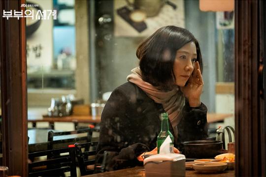 <부부의 세계>는 우리가 통상적으로 봐왔던 관계들을 다시금 들여다보게 만든다. 지극히 완전해 보이는 부부 관계가 실상은 완전히 깨져 있기도 하고, 이혼으로 끝난 관계지만 그 고리가 여전히 이어져 있기도 하다. 제 버릇 남 못주듯 계속해서 바람을 피우지만 그러면서도 어떤 허무함을 느끼며 아내 앞에 진심을 꺼내놓기도 하고, 재혼을 했지만 여전히 미련과 집착이 남아 전처를 신경쓰기도 한다. 그래서 한 길 사람 속은 알 수 없다는 사실이 <부부의 세계>의 깊은 몰입감을 만든다. 지금껏 잘 들여다보지 않았던(혹은 들여다보려 하지 않았던) 그 관계의 실체를 적나라하게 꺼내 보여주고 있으니.(사진:JTBC)